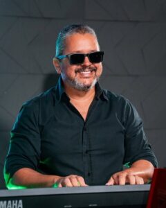 Cleyber é quem transforma ideia em estrutura física. Ele cuida das montagens de palco, som, cenário e coordenação da iluminação. Sua função não é criar, mas viabilizar o que foi criado. É ele quem afina o palco para que a obra apareça inteira.